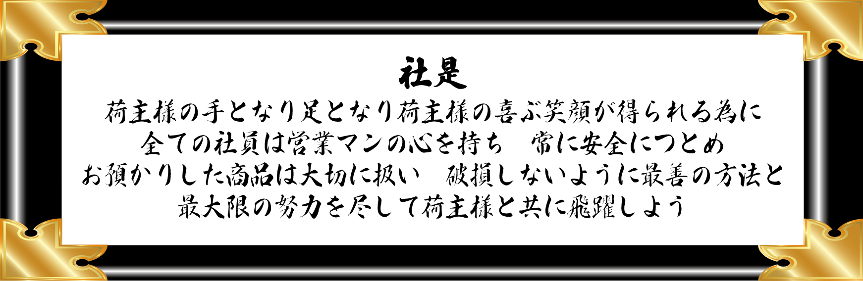 日々運送業界を取り巻く環境は急速に変化しています。時代の動きとともに、会社も変わり続けなければなりません。社会問題となっている「2024年問題」。物流業界にとって改革が求められているなか、少子高齢化による人材不足が喫緊の課題であります。運送会社にとって、付加価値を創出するための人材の確保は命題となっています。働きやすい職場環境を整備し、ベテランを大事にするのはもとより、若い社員を応援し思い切り活躍できる、そんな会社を目指しています。社員一人ひとりが、考え、挑戦し、パフォーマンスを発揮できる環境が人を成長させます。人材の充実は組織を強くし、来たる新時代に向けた持続可能な企業づくりの原動力となり、価値のあるサービス、顧客満足の実現へと繋がると考えます。